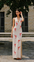 Haftowana dzianinowa sukienka z rozcięciem na szyję