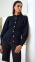 Kardigan wyróżnia się eleganckim, dopasowanym fasonem, który subtelnie podkreśla sylwetkę. Długość sięga bioder, co sprawia, że jest idealnym wyborem zarówno do spodni, jak i spódnic. Klasyczny krój został urozmaicony dużymi, ozdobnymi guzikami, które dodają całości charakteru. Kardigan posiada praktyczne kieszenie, które są nie tylko funkcjonalne, ale również stanowią estetyczny element. Rękawy są lekko bufiaste, co nadaje mu nowoczesnego wyglądu. Doskonały na chłodniejsze dni, idealnie sprawdzi się zarówno w codziennych, jak i bardziej formalnych stylizacjach.