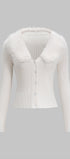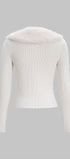 Kardigan prezentuje się wyjątkowo elegancko dzięki dopasowanemu fasonowi, który subtelnie podkreśla sylwetkę. Długość sięgająca do bioder sprawia, że jest to idealny wybór zarówno na co dzień, jak i na bardziej formalne okazje. Efektowny kołnierz z miękkim wykończeniem dodaje całości unikalnego charakteru i zapewnia dodatkowy komfort. Guziki umieszczone z przodu pozwalają na łatwe zapięcie, a ich subtelny design nie odciąga uwagi od całości. Struktura materiału jest delikatnie prążkowana, co nadaje kardiganowi nowoczesnego wyglądu. Ten model doskonale sprawdzi się jako uzupełnienie wielu stylizacji, dodając im nuty wyrafinowania.