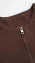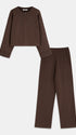 Komplet składa się z eleganckiej, krótkiej bluzy oraz spodni o prostym kroju. Bluza posiada zapięcie na suwak, co dodaje jej praktyczności i nowoczesnego wyglądu. Długie rękawy zakończone są szerokimi mankietami, nadając całości subtelnego charakteru. Spodnie o luźnym fasonie zapewniają komfort noszenia i swobodę ruchów. Idealnie sprawdzi się na co dzień, jak i na nieformalne spotkania. Ten zestaw to doskonały wybór dla osób ceniących sobie wygodę połączoną z modnym designem.