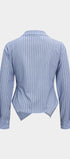 Koszula o unikalnym kroju przyciąga uwagę dzięki swojemu asymetrycznemu fasonowi. Charakterystyczne zakładki dodają jej nowoczesnego wyrazu, a subtelne guziki wzdłuż przedniego panelu podkreślają elegancję. Długi rękaw zakończony mankietem sprawia, że jest to idealny wybór na chłodniejsze dni. Kołnierz o klasycznym kształcie nadaje koszuli formalnego charakteru, co czyni ją odpowiednią zarówno do biura, jak i na spotkania towarzyskie. Dzięki lekkiemu dopasowaniu, koszula świetnie podkreśla sylwetkę, jednocześnie zapewniając komfort noszenia. To doskonała propozycja dla kobiet ceniących sobie połączenie klasyki z nowoczesnymi akcentami.
