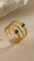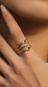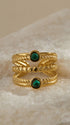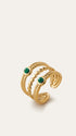 Pierścionek potrójny z zielonymi kamieniami elegancki