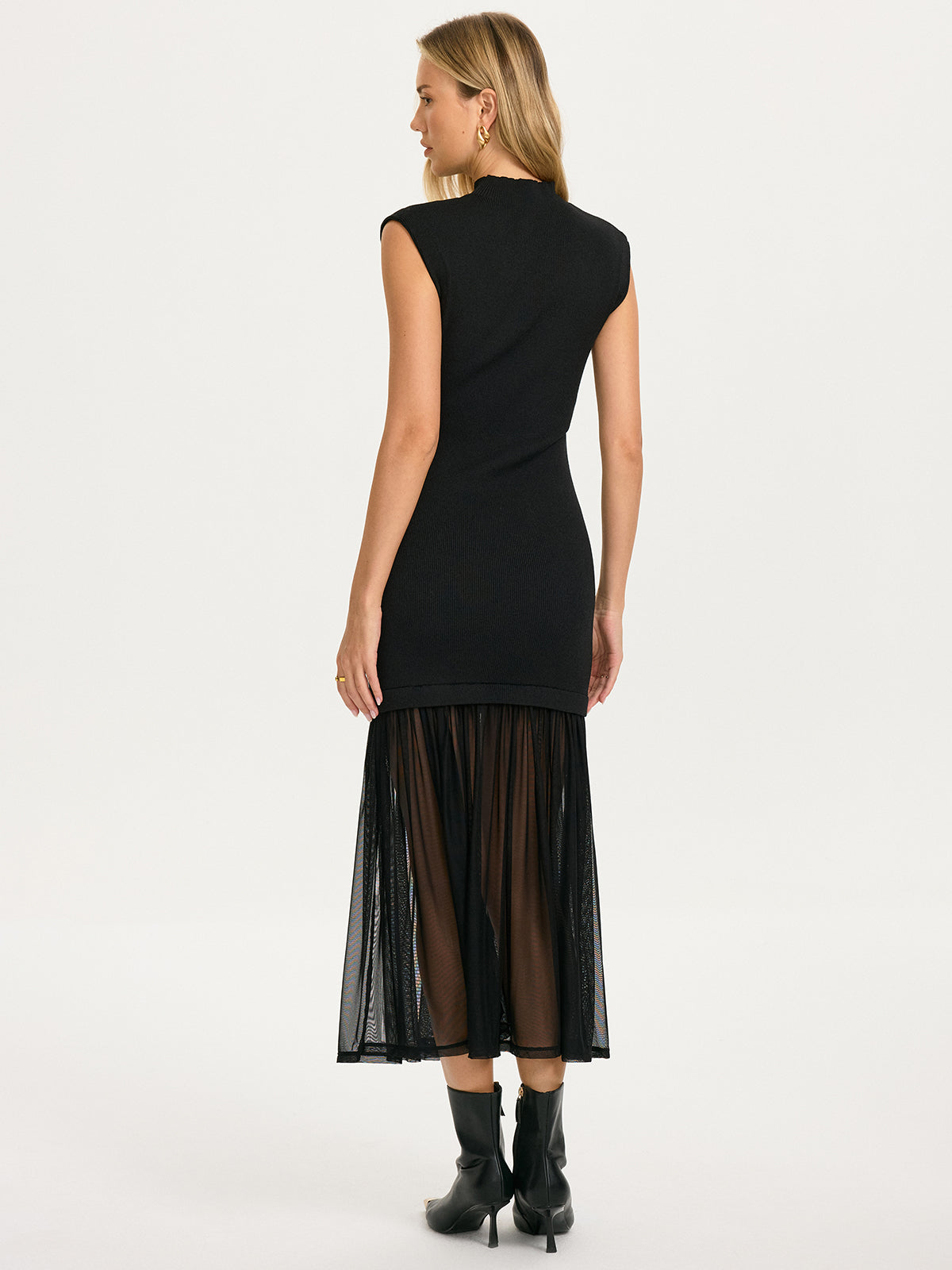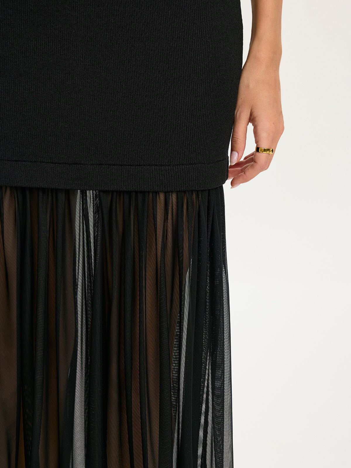 Przezroczysta sukienka dzianinowa bez rękawów z plisowanym dołem