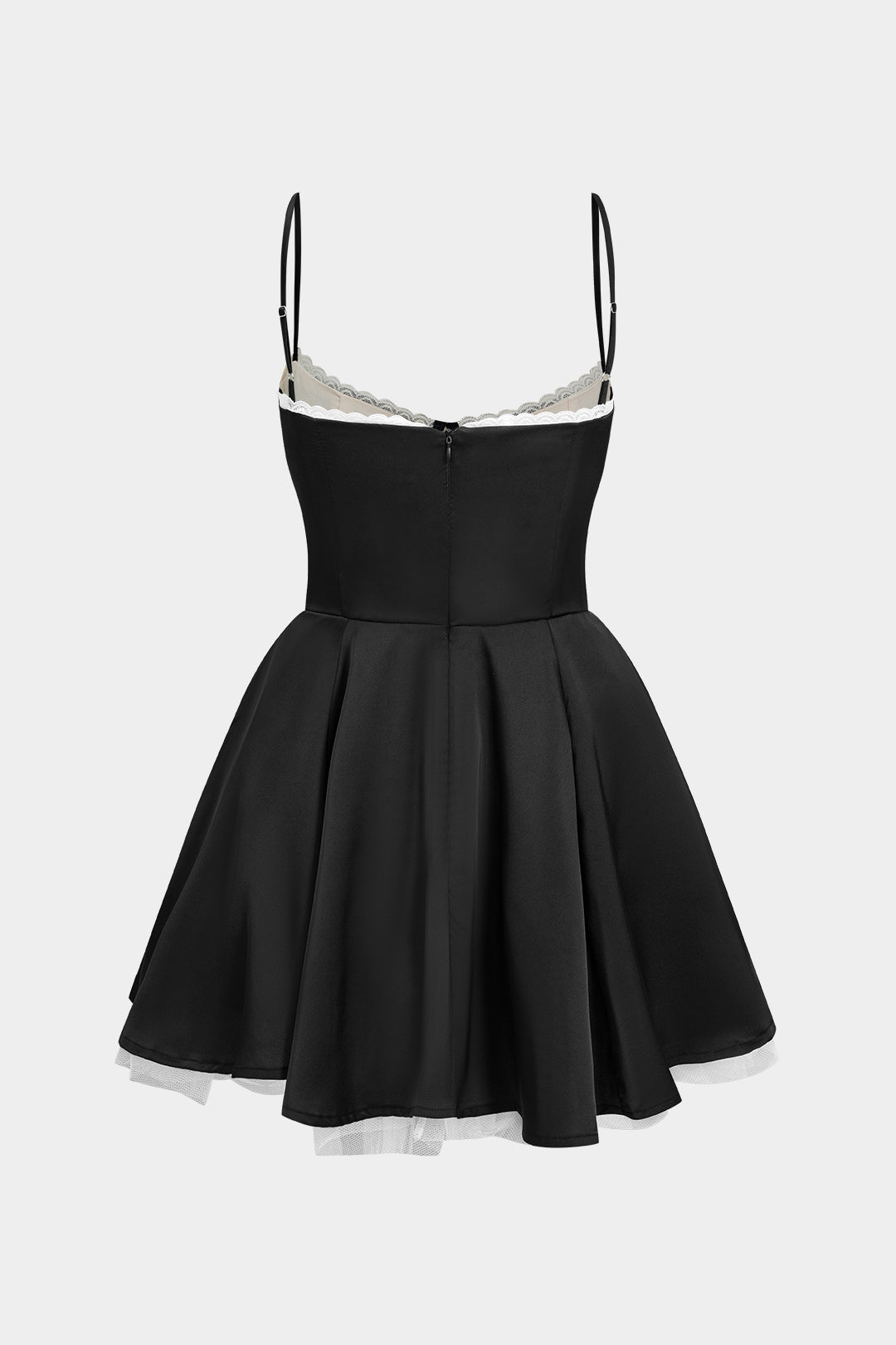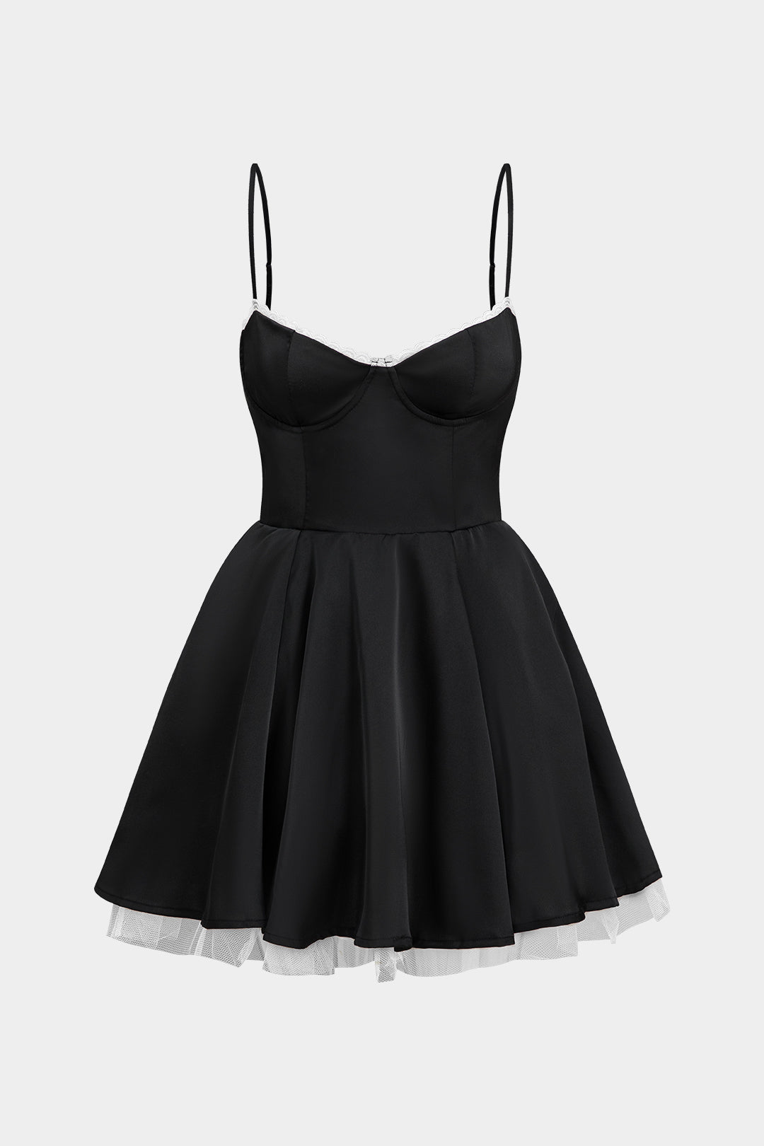 Sukienka zachwyca swoim rozkloszowanym fasonem, który podkreśla kobiecą sylwetkę i dodaje lekkości każdemu ruchowi. Krótka długość mini sprawia, że jest idealnym wyborem na wieczorne wyjścia czy imprezy, gdzie chcesz poczuć się wyjątkowo. Cienkie ramiączka subtelnie eksponują ramiona, nadając kreacji delikatności i elegancji. Wbudowane miseczki zapewniają doskonałe podtrzymanie, co podnosi komfort noszenia. Dół sukienki ozdobiony jest subtelną warstwą tiulu, która dodaje jej nieco romantycznego charakteru. Całość tworzy efektowną kompozycję, która z pewnością przyciągnie uwagę i sprawi, że poczujesz się wyjątkowo.