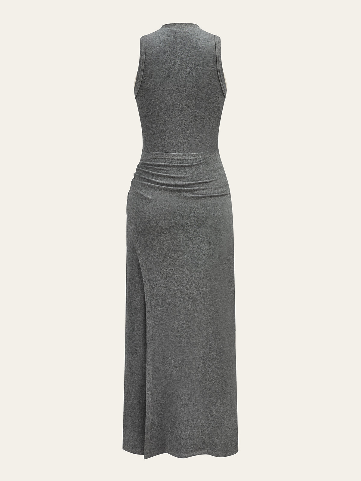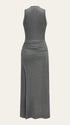 Sukienka midi bez rękawów z golfem wykonana jest z jerseyu, co zapewnia jej regularną grubość i wysoki stopień rozciągliwości. Posiada bezrękawowy krój z golfem, a jej krój jest regularny. Dominującym materiałem jest wiskoza. Zalecenia dotyczące pielęgnacji obejmują pranie w maksymalnej temperaturze 30°C, unikanie wybielania, pranie z podobnymi kolorami, prasowanie w maksymalnej temperaturze 110°C oraz unikanie czyszczenia chemicznego.