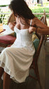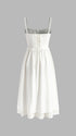 Sukienka midi z falbaną na dole wykonana jest z bawełny o regularnej grubości i nie posiada rękawów. Charakteryzuje się głębokim dekoltem i regularnym krojem bez elastyczności. Dominującym materiałem jest bawełna. Zaleca się pranie w maksymalnej temperaturze 30°C, unikanie wybielania, pranie z podobnymi kolorami, prasowanie w maksymalnej temperaturze 110°C oraz nieczyszczenie chemiczne.