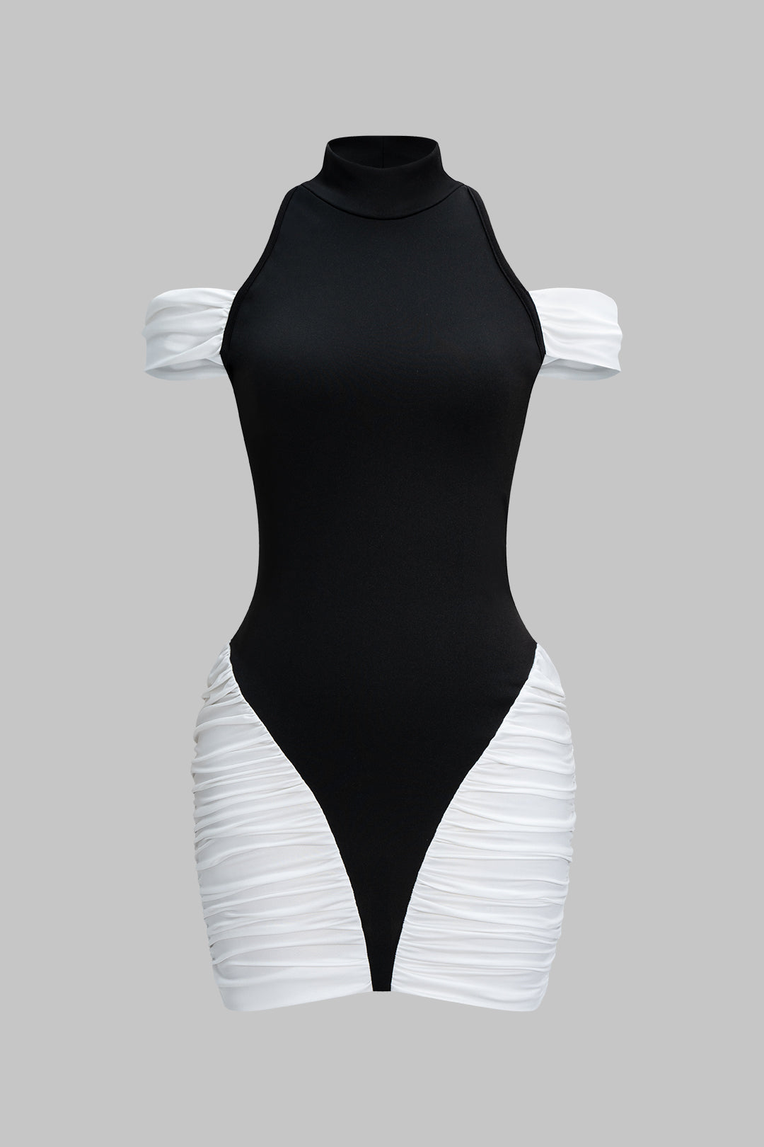 Sukienka mini z marszczeniami i odkrytymi ramionami