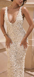 Sukienka wieczorowa z głębokim dekoltem i aplikacjami